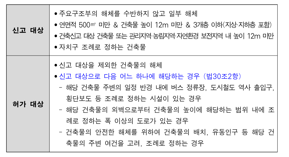 - 허가권자는 ①건축물 철거를 허가하려고 하거나 ②건축물 철거 신고를 받은 경우로서 건축물 철거의 안전한